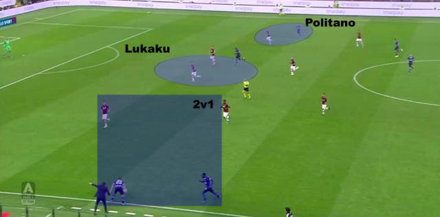 上赛季米兰德比,詹保罗排出4312阵型,红黑右路防守以寡敌众,国际米兰的第2个进球就是在左路获得广阔空间,巴雷拉传中,卢卡库头球破门。